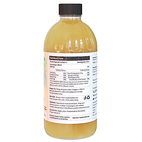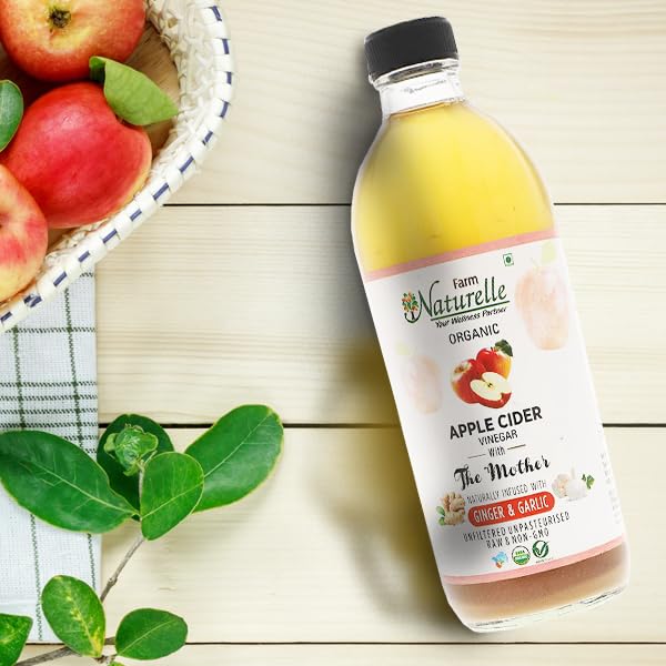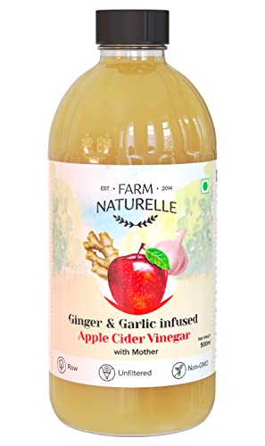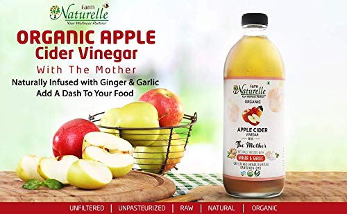 • Farm Naturelle Organic Apple Cider Vinegar(ACV) with Mother (Infused with Ginger (Adrakh) and Garlic (Lahsun)) is 100% Natural Raw Unfiltered and Unpasteurized. It contains Mother which is a proof of Unfiltered Vinegar