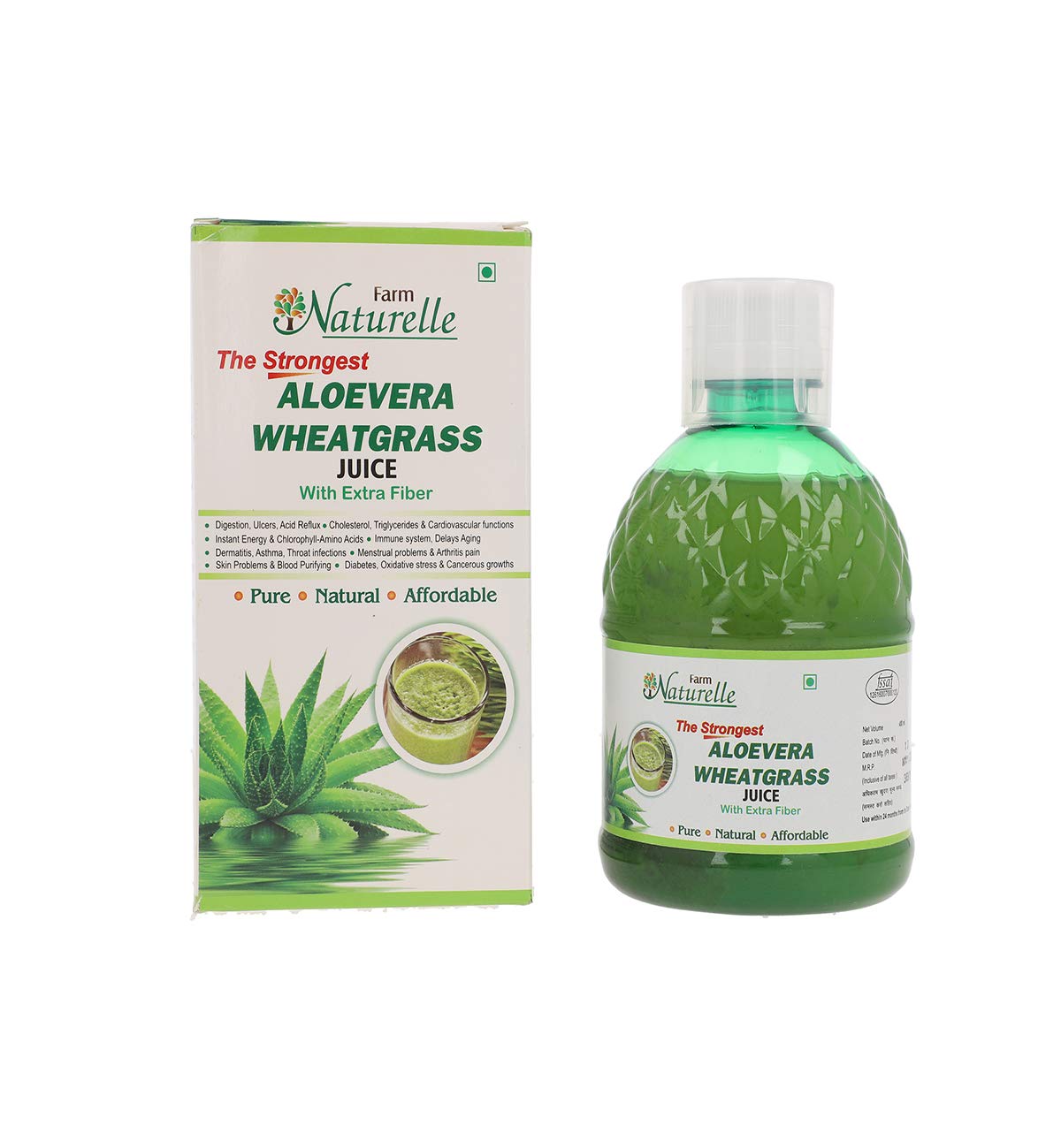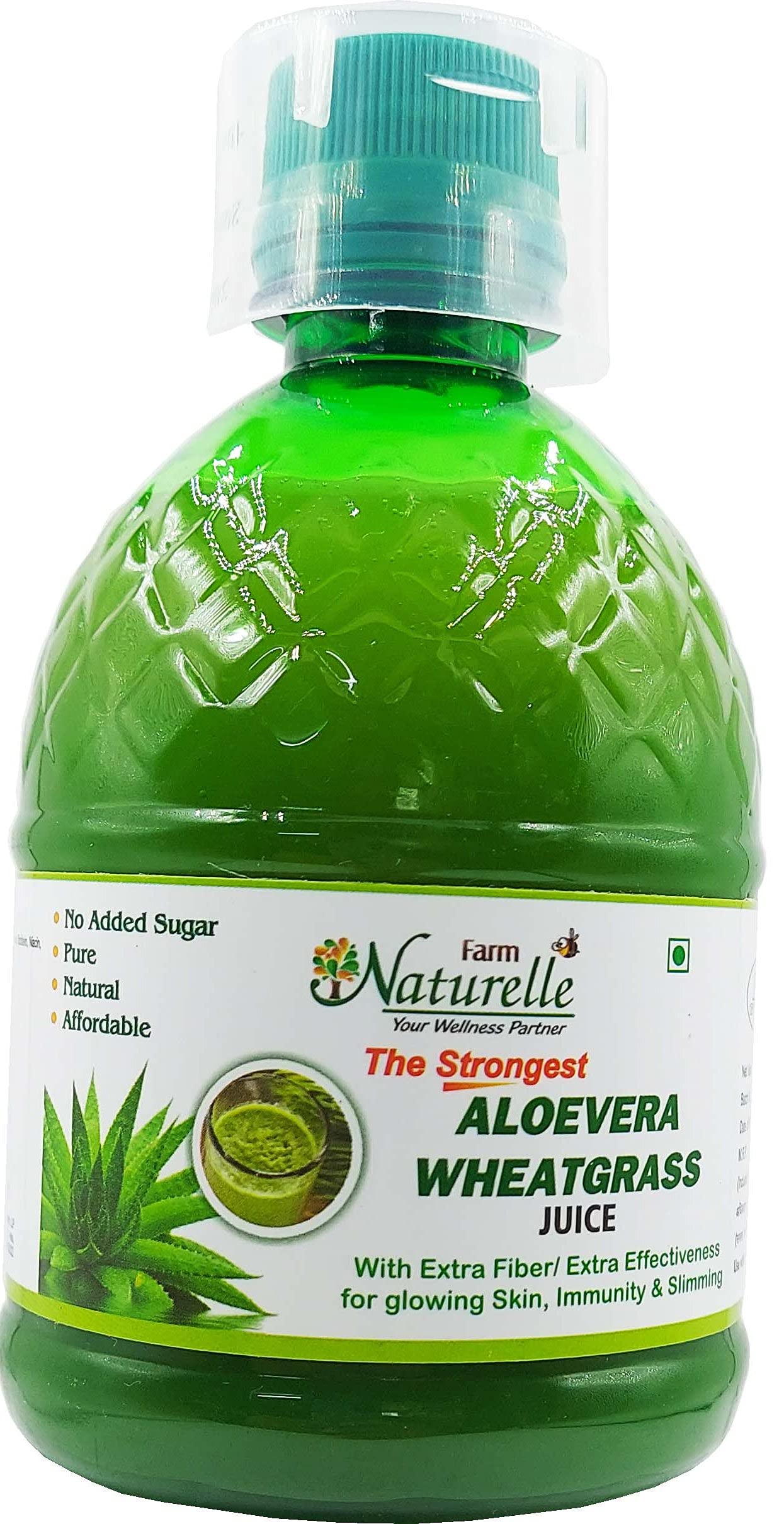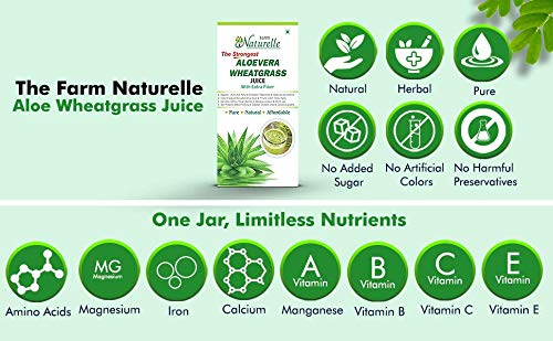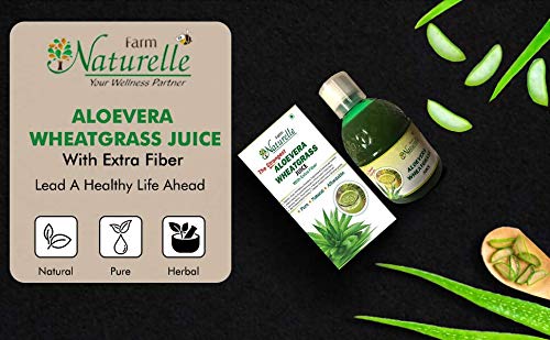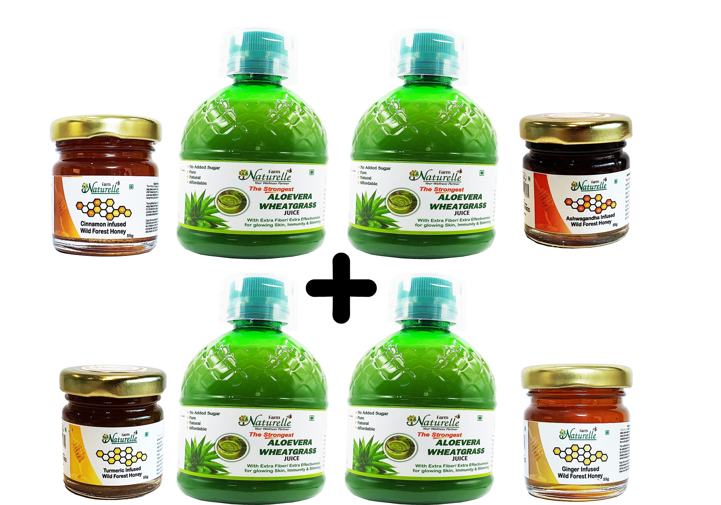 Farm Naturelle-Strongest Ayurvedic Aloevera Wheatgrass Gel/Juice - Detoxifier, Improved Digestion, Skin Health & Fat Fighter| 100 % Pure - 2x400ml + 55g x 2Herbs Infused Forest Honey