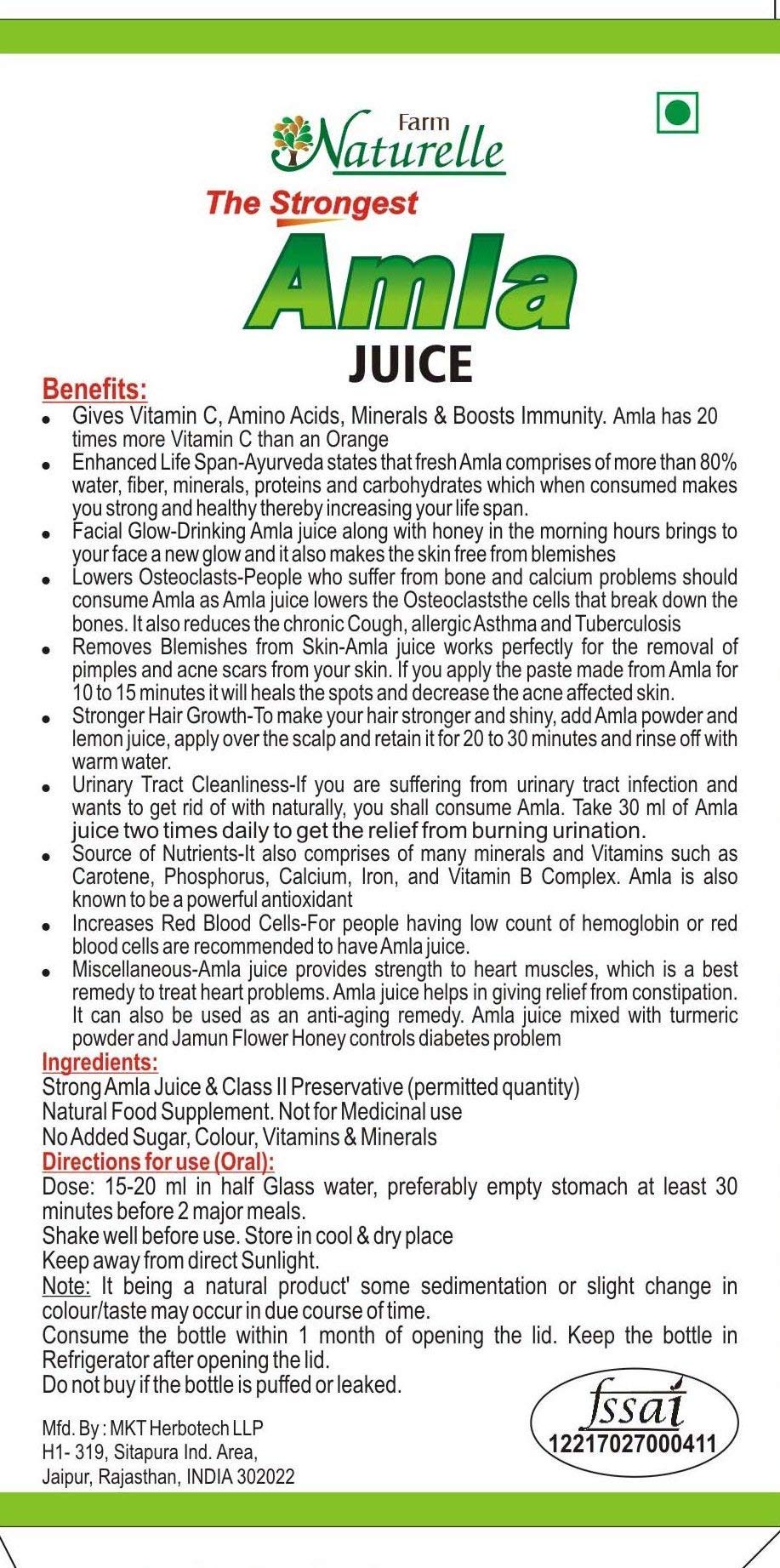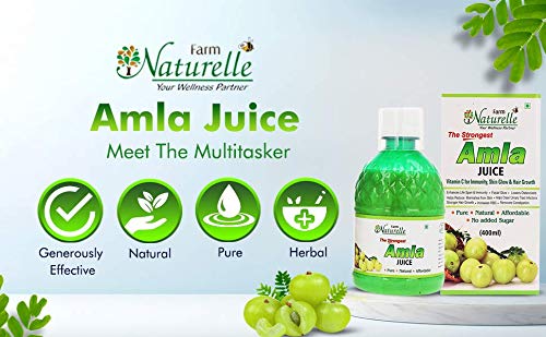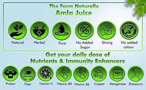 • 100% Pure Amla Juice. Full of Vitamin C Amino Acids Minerals Immunity Booster Amla has 20 times more vitamin C than an Orange regular consumption increases longevity