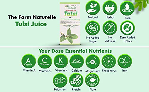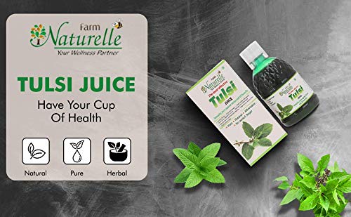 Farm Natural Tusli/Holy Basil juice is 100% pure. It helps to reduce changes in mood sleep appetite immunity etc that are associated with stress. It helps people having respiratory issues. It acts as a natural blood purifier and said to keep our bodies healthy and away from common cold and flu. Tulsi has powerful antioxidant properties that protect body from damage associated with free radicals.