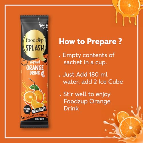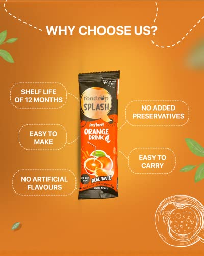 Foodzup Splash 1 Min Instant Orange Drink - 30 Sachets | Orange Flavours | 30 Servings | 450g