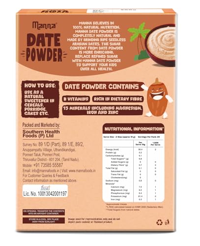 • Manna Date Powder contains 15 minerals including magnesium, iron and zinc
