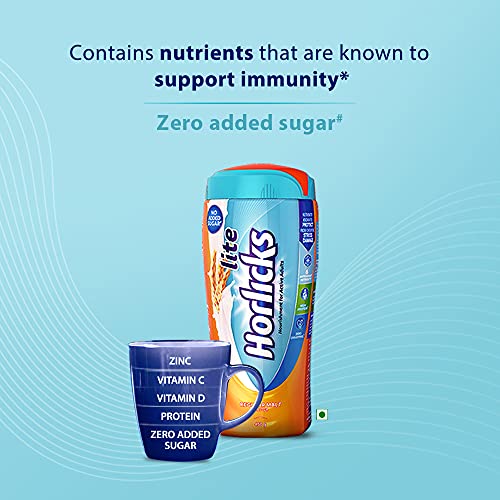 "Horlicks Lite is a specialized adult health drink that caters to the unique nutritional requirements of active adults aged 35 and above. Horlicks Lite with no added sugar contains high-quality protein that helps in cell maintenance and repair which is essential for maintaining a healthy body. Moreover Horlicks Lite is free from added sugars and cholesterol making it a perfect fit for older adults. Horlicks adult contains essential nutrients like Vitamin C Vitamin D and Zinc that are known to support the optimal functioning of the immune system promoting a healthy body. Additionally Lite Horlicks with no added sugar contains six antioxidant nutrients like Vitamin C Vitamin E Vitamin B2 Zinc Selenium and Copper that protect cells from oxidative stress ensuring the body's overall well-being. This health drink for adults is designed to support the healthy lifestyle of active adults and provides a maximum shelf life of 12 months. Add three heaped teaspoonfuls (25g) of the powder to 200ml of cold or hot milk or water to prepare your nourishing Horlicks Lite drink. Stir quickly to mix well and enjoy Horlicks Lite."