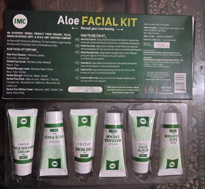 IMC ALOE FACIAL KIT ( 6 X 30g ) Enriched with Aloe Vera Haldi Tulsi Neem Sandal Rose Petals and Kesar.