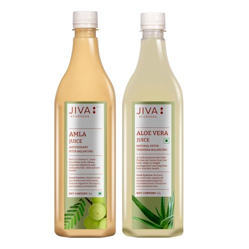 Amla is a natural source of Vitamin C which is crucial for immunity healthy hair and eyesight. Amla juice is also an effective heart and liver tonic that helps detoxify and purify the body. A natural anti-oxidant and blood purifier Aloe Vera strengthens the immune system and improves digestion. It is a good skin tonic and anti-aging agent. Jiva Aloe Vera Juice is made from premium-quality aloe vera plant as per ancient Ayurveda texts