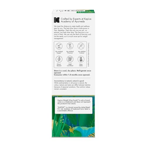 • UNCOMPROMISED QUALITY WITH NO ADDED SUGAR: Kapiva Aloe + Garcinia Juice deploys pulpy Aloe straight from Thar Desert and fresh and small Garcinia fruit for high HCA content as HCA is present on the peel of Garcinia. We juice the Aloe within 4 hours to ens