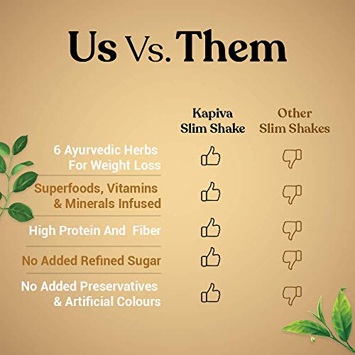 6 WELL-KNOWN AYURVEDIC HERBS FOR WEIGHT MANAGEMENT: Weight management wont be a task anymore with Kapiva Slim Shake empowered with 6 ayurvedic herbs. Garcinia Green Coffee bean and Green Tea break down excess fats in the body. Cinnamon prevents blood suga
