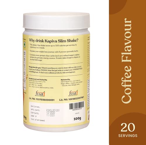 Kapiva Coffee Slim Shake -Meal Replacement Drink Powered With 6 Ayurvedic Herbs and 12 Superfoods - Helps in Weight Management - 500 Grams (20 Servings)