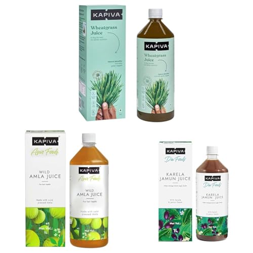Kapiva Wheatgrass Juice, 1 L & Kapiva Wild Amla Juice 1L & Kapiva Karela Jamun Juice (1L)