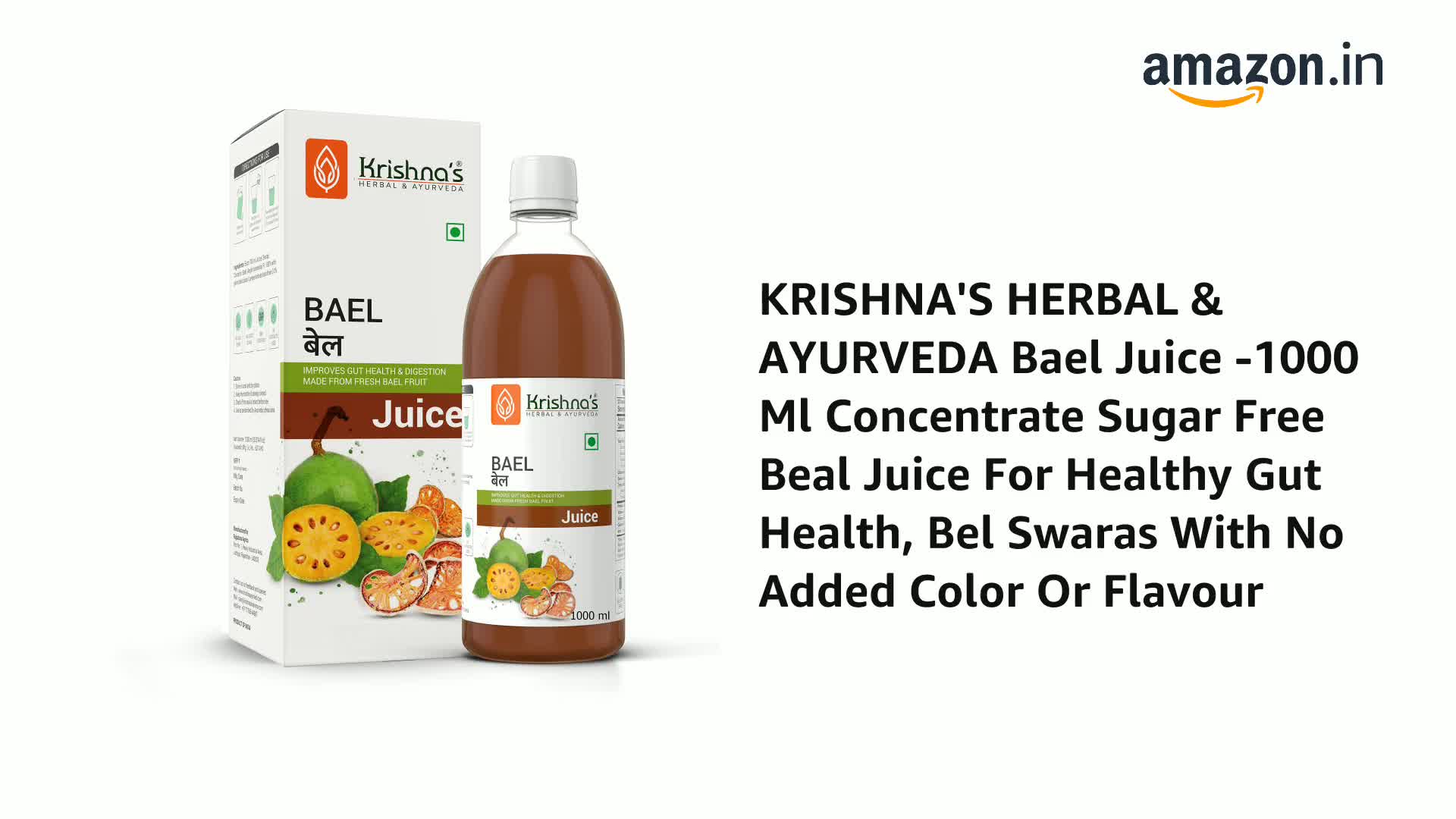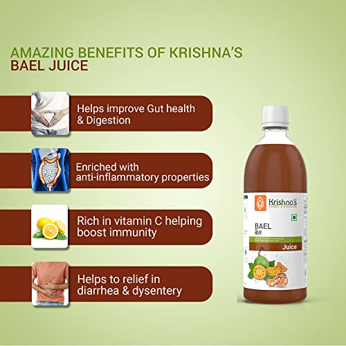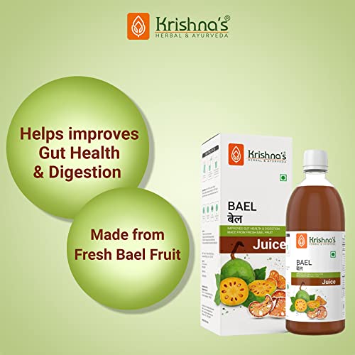 KRISHNA'S HERBAL & AYURVEDA Bael Juice -1000 Ml Concentrate Sugar Free Beal Juice For Healthy Gut Health, Bel Swaras With No Added Color Or Flavour