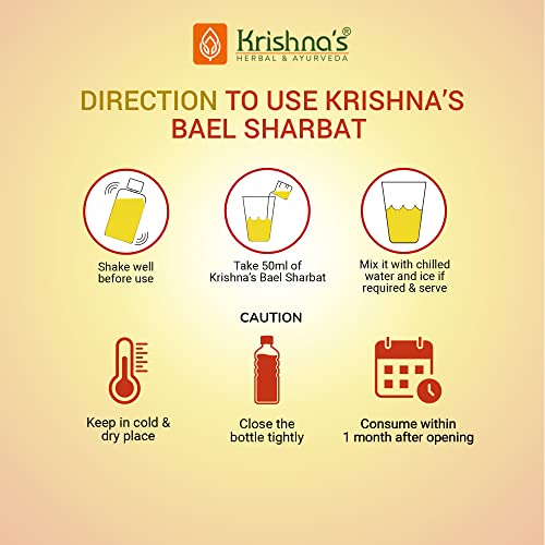 • How to use - Take 2-3 Teaspoon Krishna's Bael Sharbat mix chilled water with ice and serve