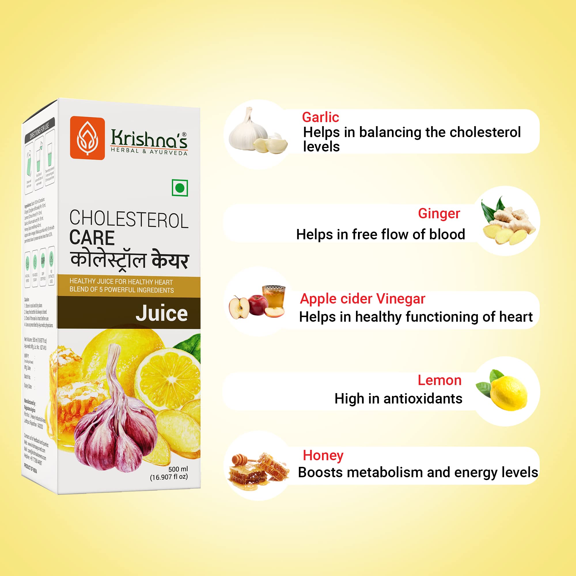 KRISHNA'S HERBAL & AYURVEDA Cholesterol Care Juice - 1000 Ml | Contains Honey With Apple Cider Ginger Garlic Sugar Free Helps In Digestion Made In India