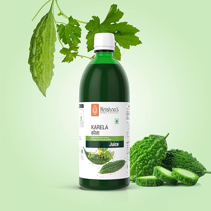 HomeHealth & PersonalDiet & NutritionHealth DrinksKrishna's Karela Juice - 500 ml | Fresh Karela | Ayurevedic Formulation to maintain Sugar Level | Enriched with Vitamin C - Vitamin A | Sugar free Juice with No Added Color or Flavour
