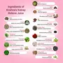 Krishna's kidney relieve juice is beneficial in improving efficiency and life of kidneys. Key ingredients: amia 4. 2 percent harad 4. 2 percent baheda 4. 2 percent arjun chal 4. 2 percent ber 4. 2 percent anar dana 4. 2 percent pushkar moo. 4. 2 percent kokam 4. 2 percent gulab 4. 2 percent ashwagandha 4. 2 percent safed mush 4. 2 percent konch beej 4. 2 percent varun chal 4. 2 percent brahmi 4. 2 percent vasaka 4. 2 percent kutki 4. 2 percent gokhru 4. 2 percent chirayata 4. 2 percent neem 4. 2 percent wheatgrass 4. 2 percent gomutra ark 4. 2 percent punarnava 4. 2 percent pashan bhed 4. 2 percent giloy 3. 4 percent with permitted class ii preservative .