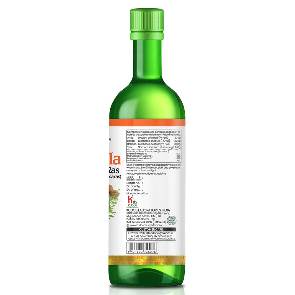Kudos Amla Ras Natural Rasayana Anti-Oxidant Vitamin-C Source Anti-Aging Restorative Tonic (Triphala Ras 500Ml)