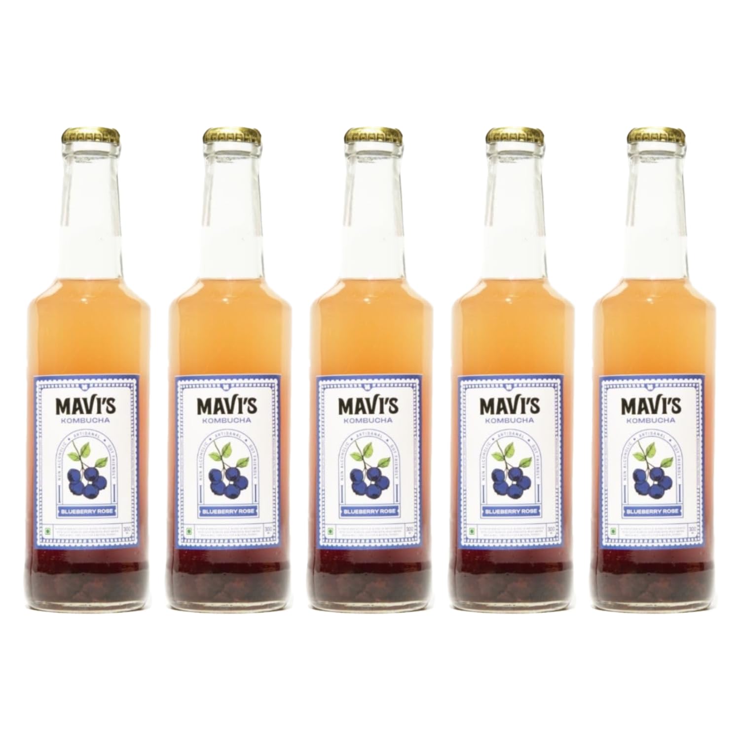 MAVI's Blueberry & Rose Kombucha | Pack of 5 | 300 ml each | Real Blueberries & Pure Rose Water | Raw & Alive | Gut Friendly | 100% Natural & No Preservatives | No Artificial Flavour or Colour