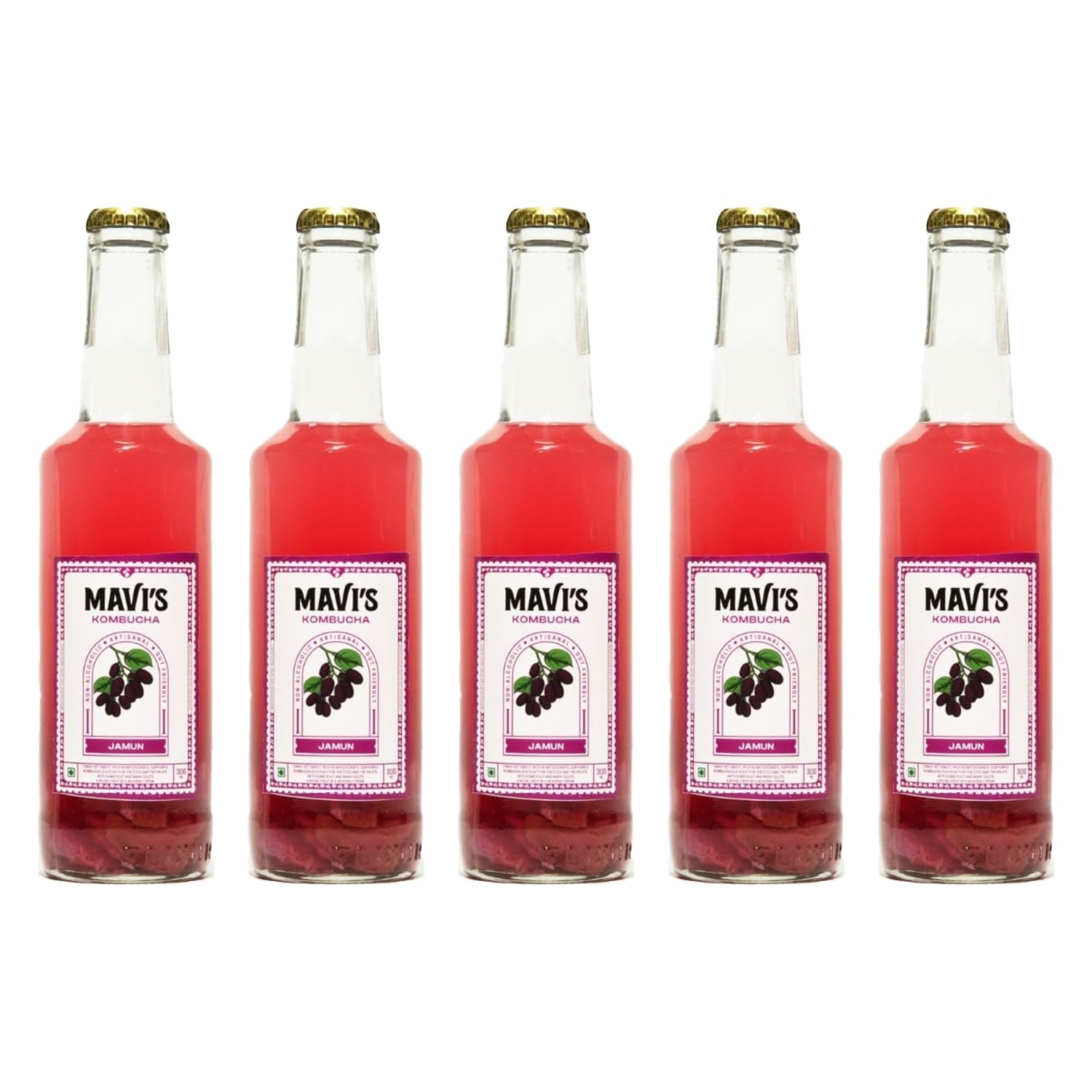 MAVI's Jamun Kombucha | Pack of 5 | 300 ml each | Real De-seeded Jamun | Raw & Alive | Artisanal | Gut Friendly | 100% Natural & No Preservatives | No Artificial Flavour or Colour |