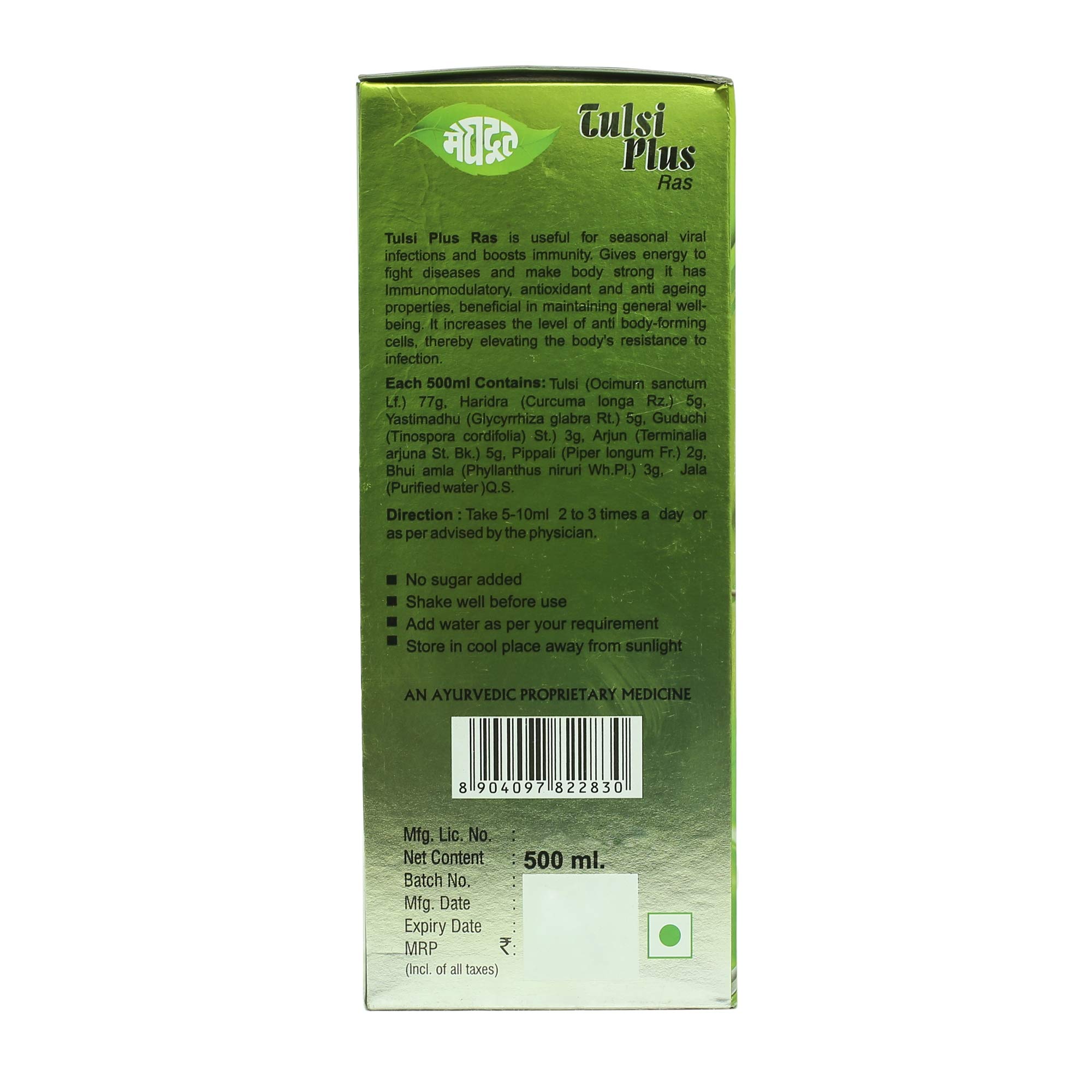 Meghdoot Ayurvedic Tulsi Plus Juice Natural Immunity Booster Supports Respiratory Health Relieves Cold and Cough Detox Juice Ayurvedic Herbal Tonic for Overall Wellness 500ml (Pack of 1)