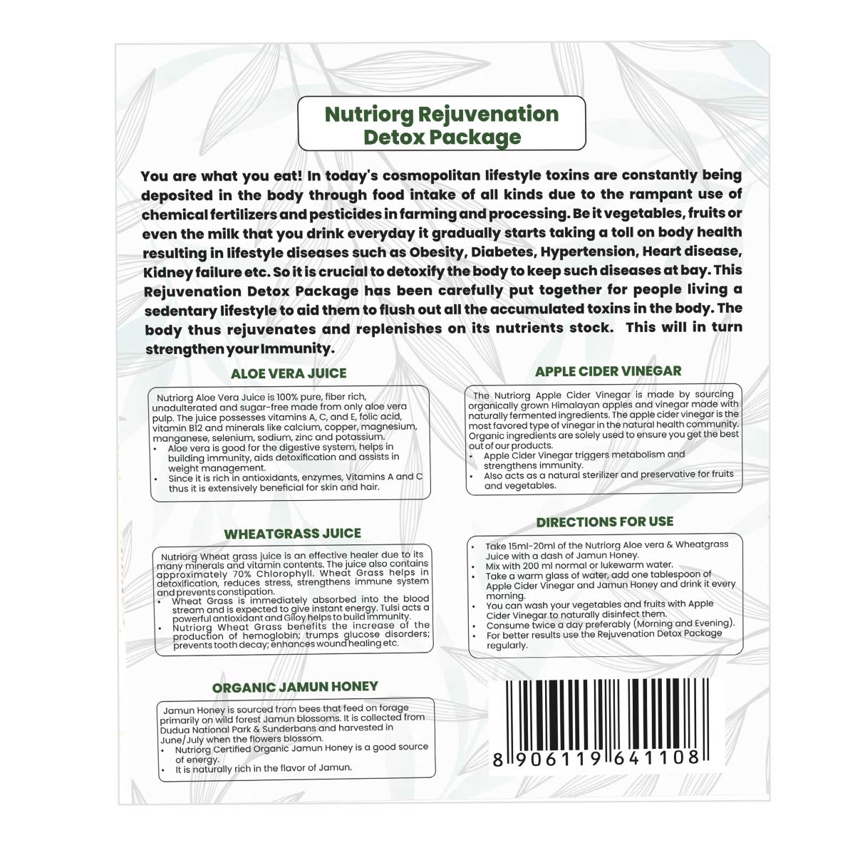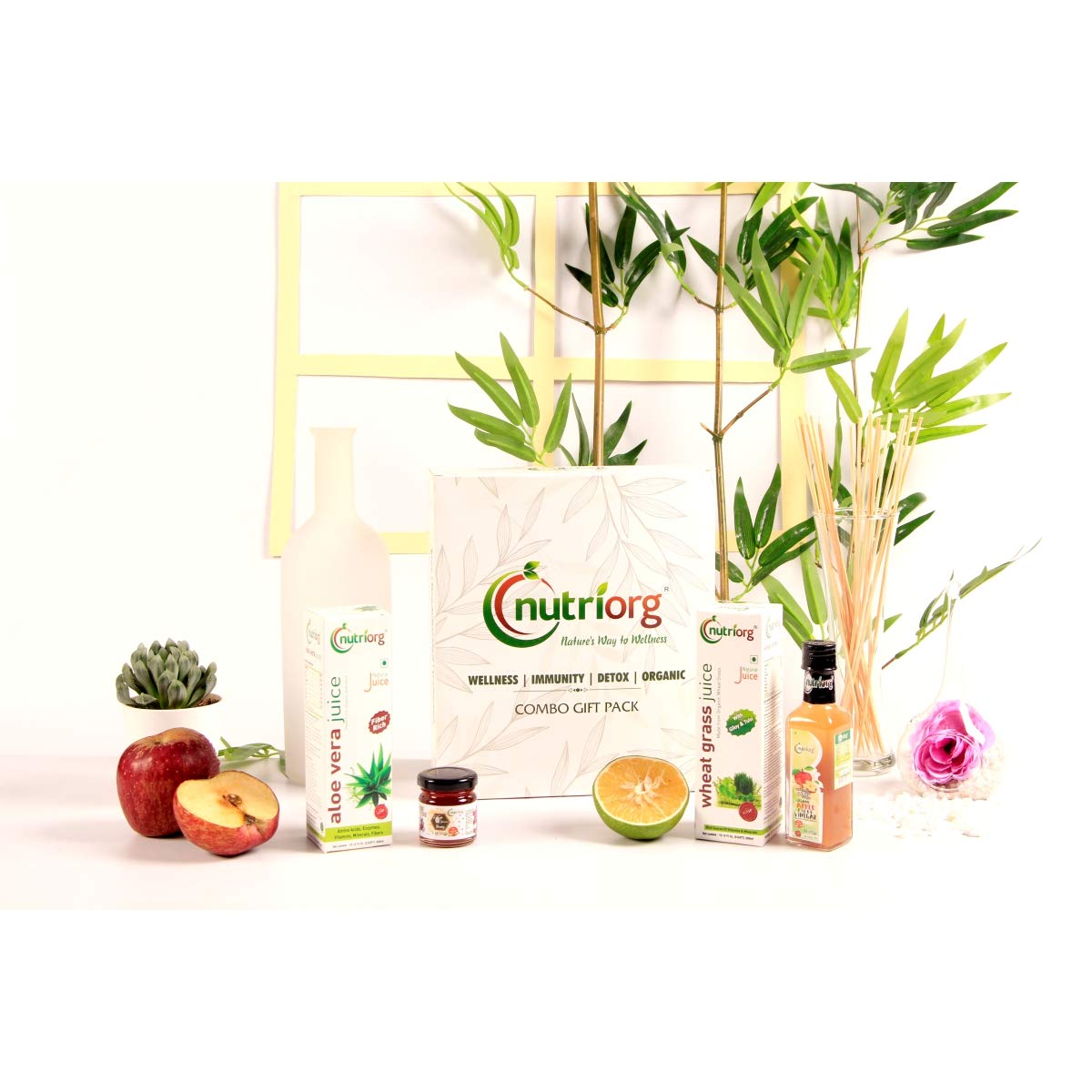Nutriorg Aloe Vera juice 300 ml Wheatgrass Juice 300 ml Apple Cider Vinegar 100 ml & Jamun Honey 50g (Combo 4)