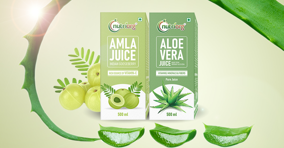 Nutriorg Aloevera with Kiwi Flavour 500 ml, Rejuvenates Skin and Hair, Natural Juice for Skin Care,No Added Sugar (1L)