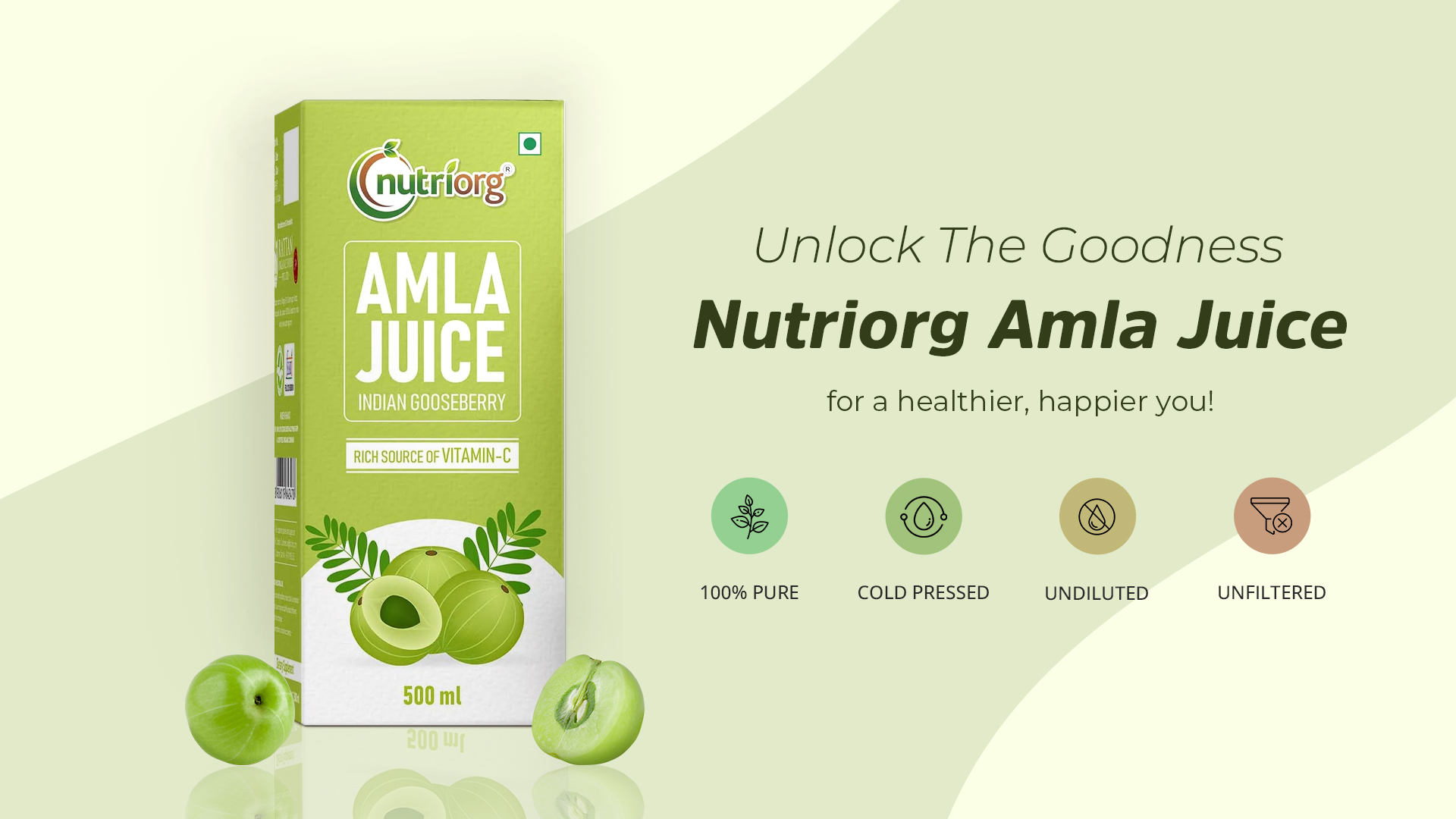 Nutriorg Amla Juice is made from Organic Amla which is cultivated in company own certified organic farmland situated in Rajasthan. Nutriorg Amla Juice is 100% pure and unadultered. Amla is the richest source of vitamin-C. It enhances immunity good for eye