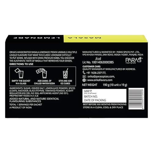 Authentic Ingredients Made with the finest quality ingredients by Orika India's most trusted spice brand the masala lemonade is free from artificial flavours colours and preservatives.