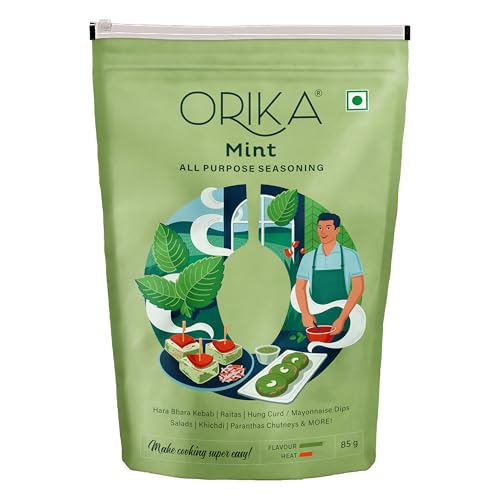 Orika mint seasoning can be used to make dishes like pudina parathas yogurt based dips pesto dips and salads fresh mint tea hara bhara kebabs chutneys biryani raita and mint flavoured icecreams. meat fish biryani raita fresh mint tea curry chutney jui