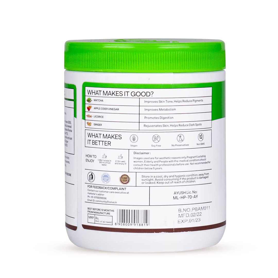 • ACV and Matcha for Better Metabolism: Apple Cider Vinegar and organic Matcha powder present in OZiva Plant Based ACV Matcha increase fat metabolism and reduce body fat. Matcha powder is also known to be highly effective in reducing body fat as well as inc
