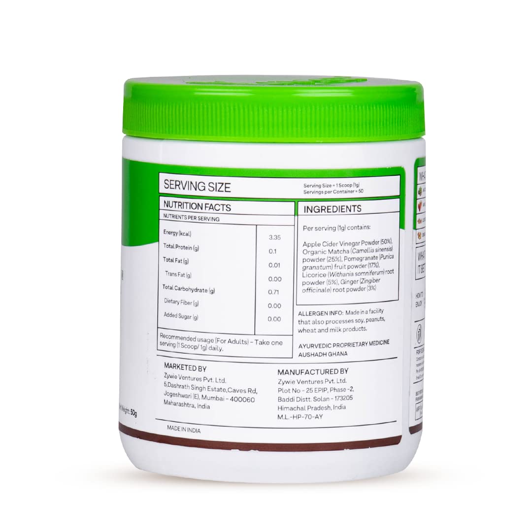 • Har Tarah Se Better With Clean & Plant-Based Products: OZiva Plant Based ACV Matcha is a soy-free and gluten-free source of apple cider vinegar that contains no added sugar or artificial sweeteners making it absolutely safe for long term consumption.