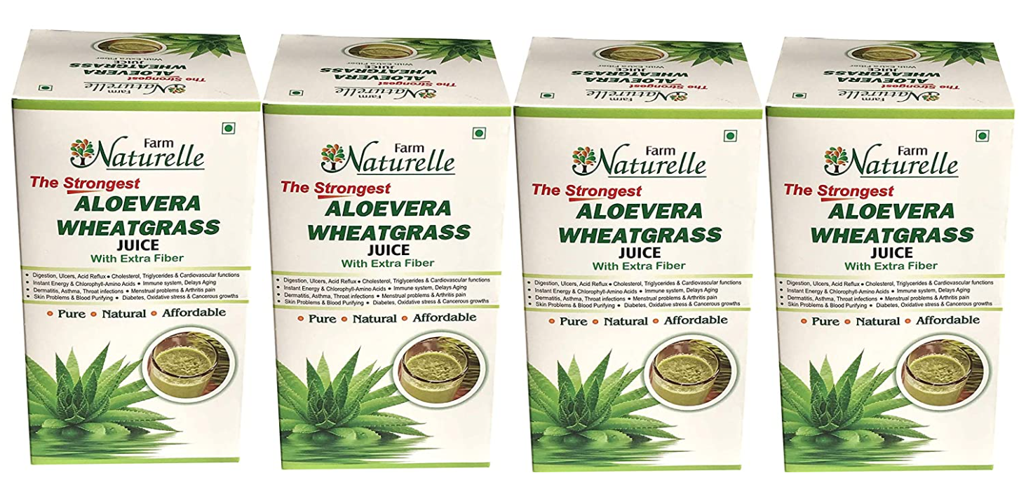 Farm Naturelle Strongest Aloevera Wheatgrass Herbal Juice Box - 100 % Pure & Natural (Pack of 4) - 1