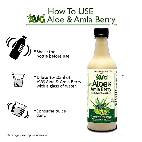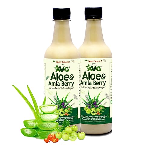 AVG Health Organics Aloe & Amla Berry Aloevera & Amla Juice with Ashwagandha Immunity Booster Natural Detox Sugar Free 500ML | Pack of 2