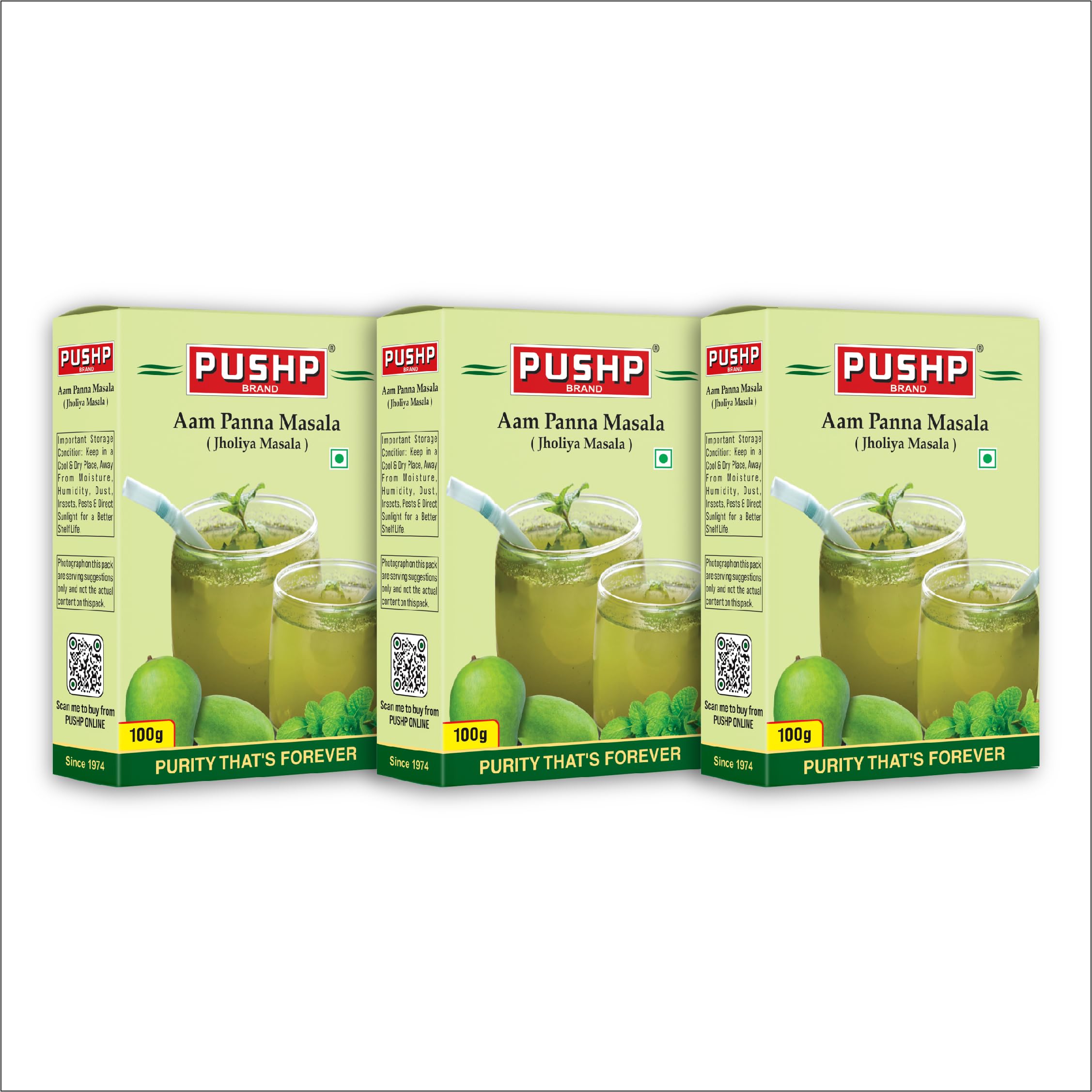 Pushp Aam Panna Masala | 100g Box | Tangy Mango Drink Mix | Jholiya Masala | Refreshing Summer Cooler | Quality Blend | No Preservatives (Pack of 3)
