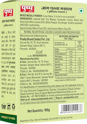 • Mango Drink Mix - Pushp Aam Panna Masala brings the taste of raw mangoes in a convenient mix. Perfect for making refreshing summer drinks.