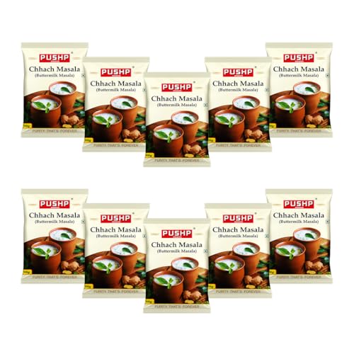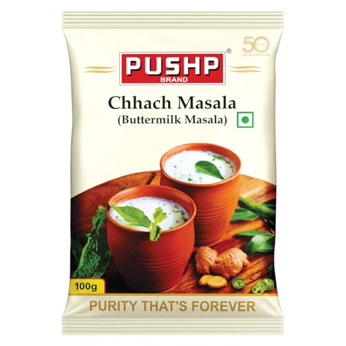 Elevate your everyday buttermilk into a flavorful and refreshing experience with Pushp Chhach Masala. Crafted with a time-tested recipe perfected over 50 years this traditional spice blend adds a burst of authentic Indian flavor to every glass. Made with high-quality natural ingredients Pushp Chhach Masala delivers a perfectly balanced mix of tangy spicy and savory notes that enhance the taste and digestive benefits of your chhach (buttermilk). Whether you're serving it at home in restaurants or during festive occasions this masala is a must-have to impress with its unique taste and aroma. Simply sprinkle it over a chilled glass of buttermilk stir and enjoy a refreshing drink that's both cooling and full of flavor. Packed in a convenient easy-to-store pouch this masala maintains its freshness and aroma over time. Pushp Masale a trusted name in Indian kitchens for decades ensures purity quality and authentic regional flavor in every pinch.