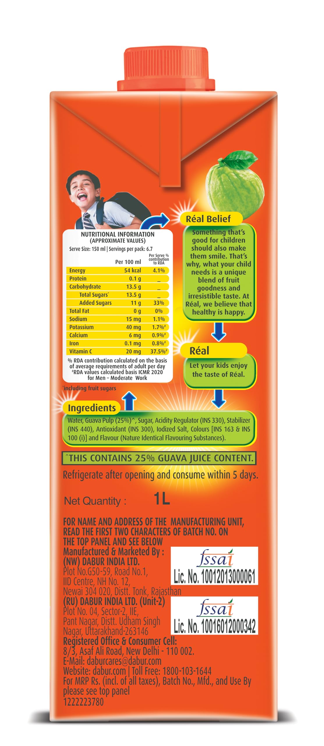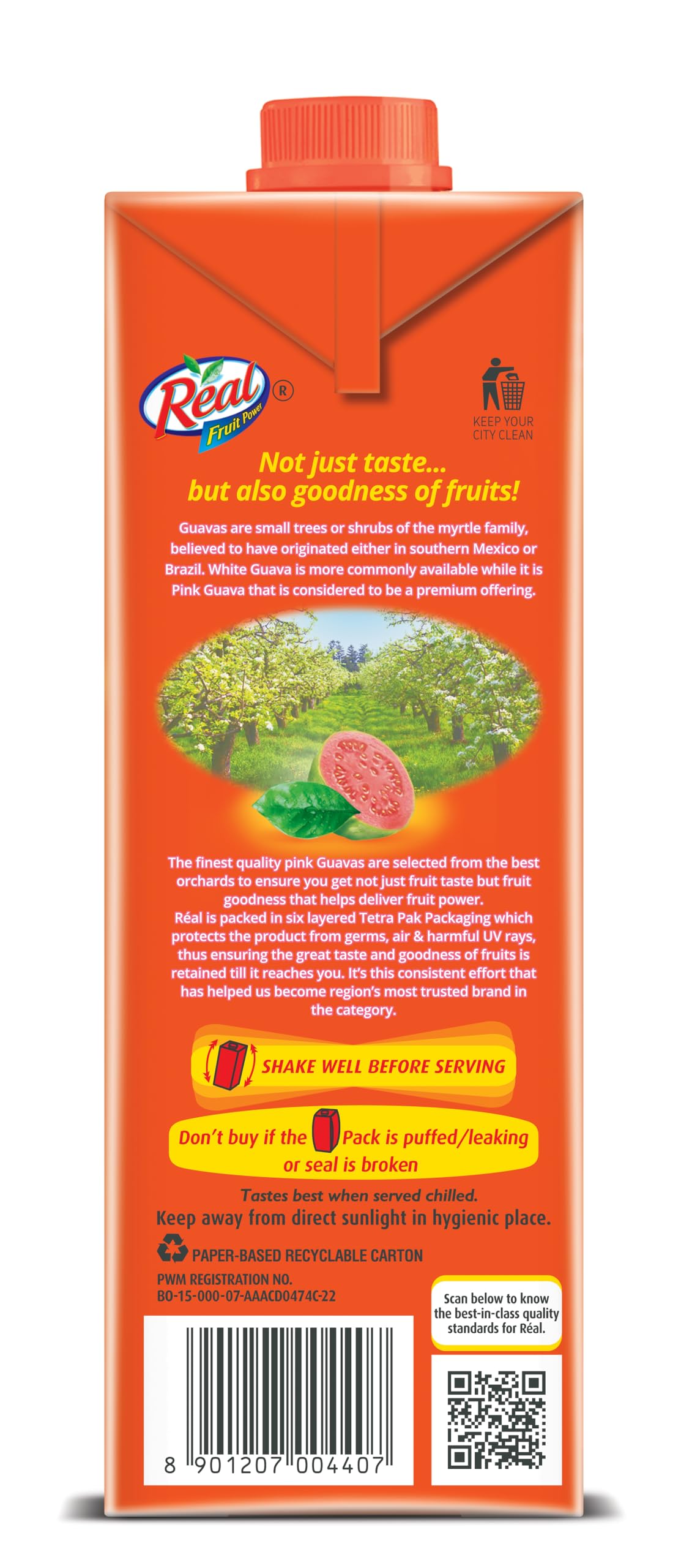 • Each pack of Réal is packed aseptically in 6-layer TetraPak cartons. These packs are tamper-proof and retain fruit goodness & food safety to give you the best-tasting fruit experience in every sip.