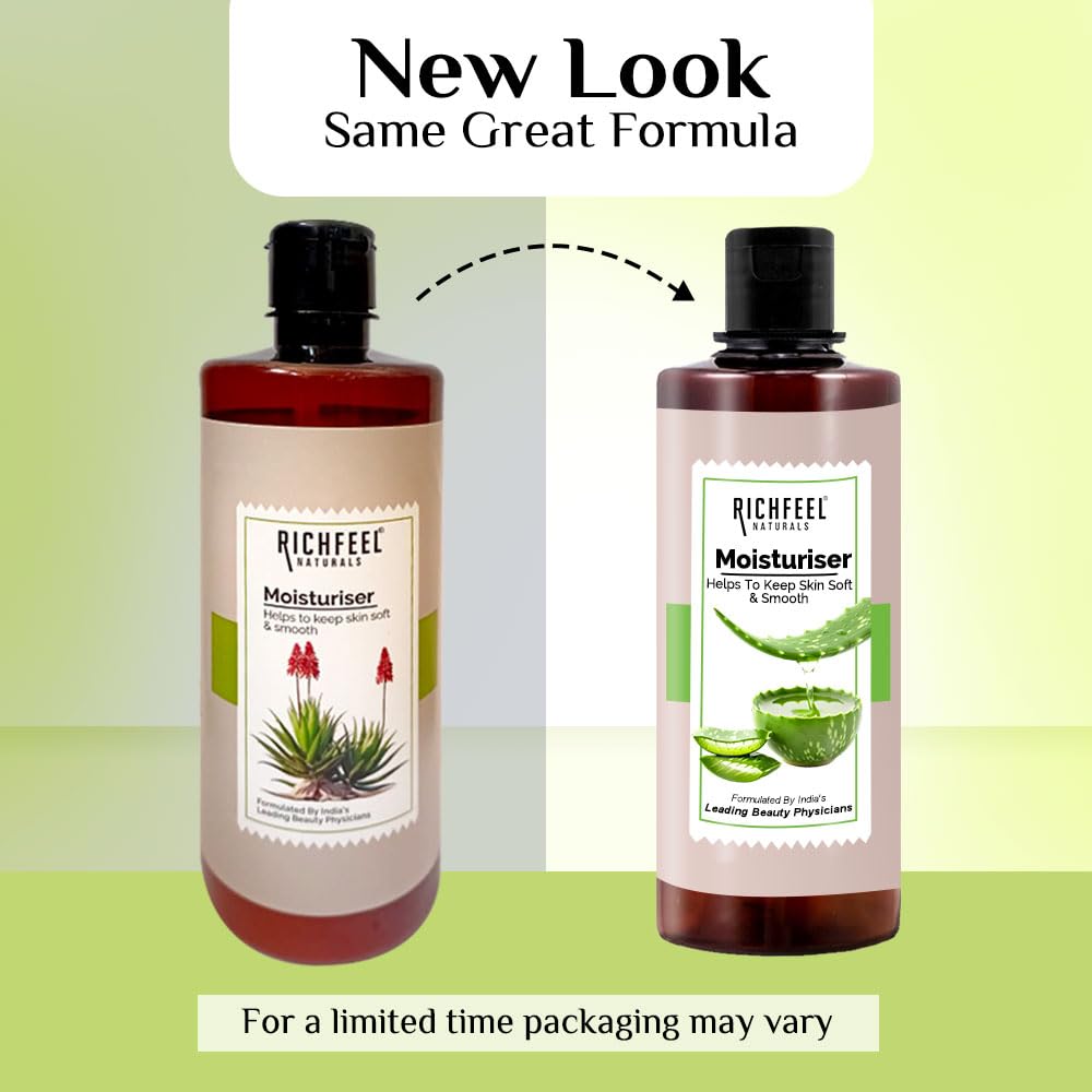 Richfeel Moisturizer Enriched With Aloe Leaf Juice | Lightweight Moisturiser | For Hydrated & Glowing Skin | Non-Sticky Spreads Easily & Instantly Absorbs | For All Skin Types | 500 ml