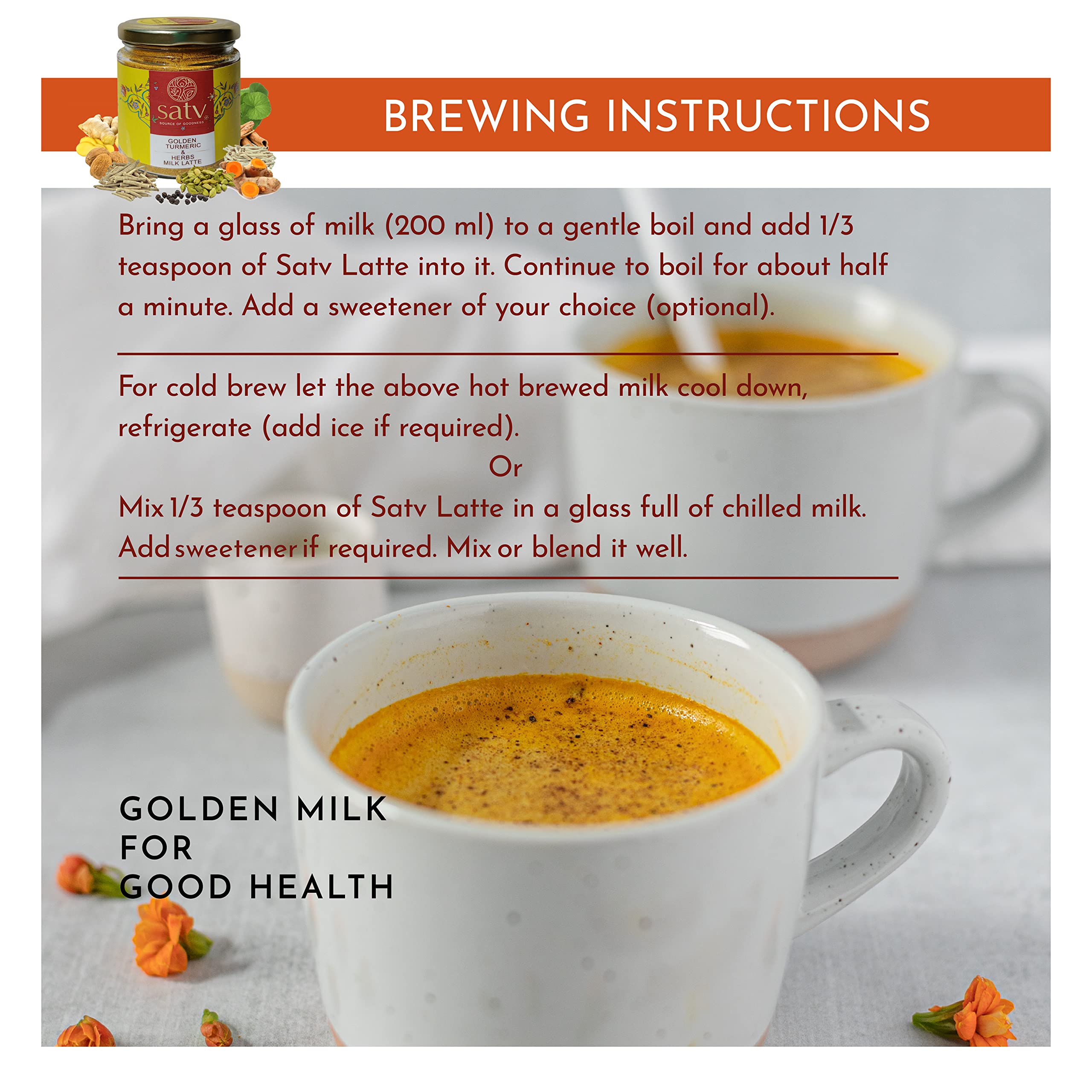 • Delicious: We've reinvented the age old haldidoodh recipe to give milk an invigorating taste. A powerhouse of goodness Satv's Milk Latte is a favourite for its delicious in taste.
