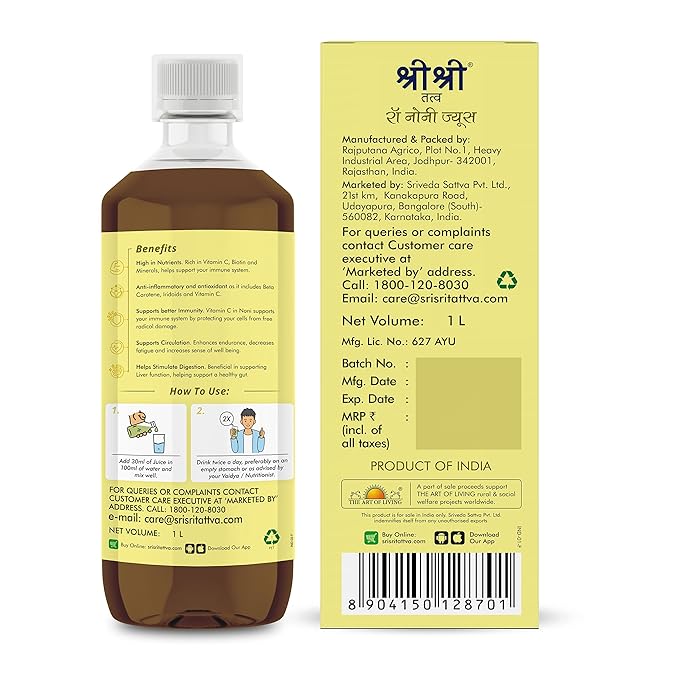 Sri Sri TATTVA shuddhta ka naam Raw Noni Juice-Holistic Health,1L
