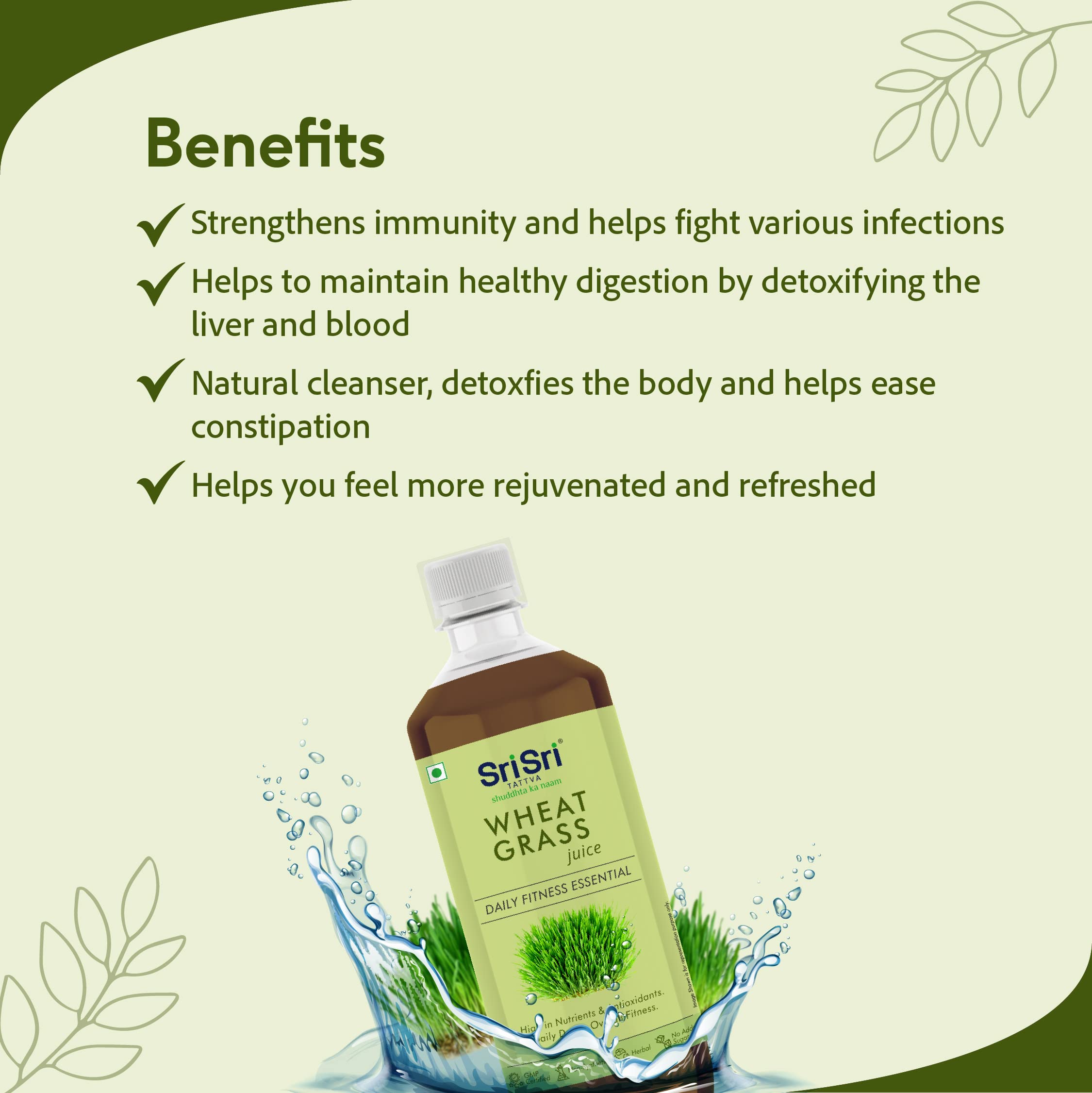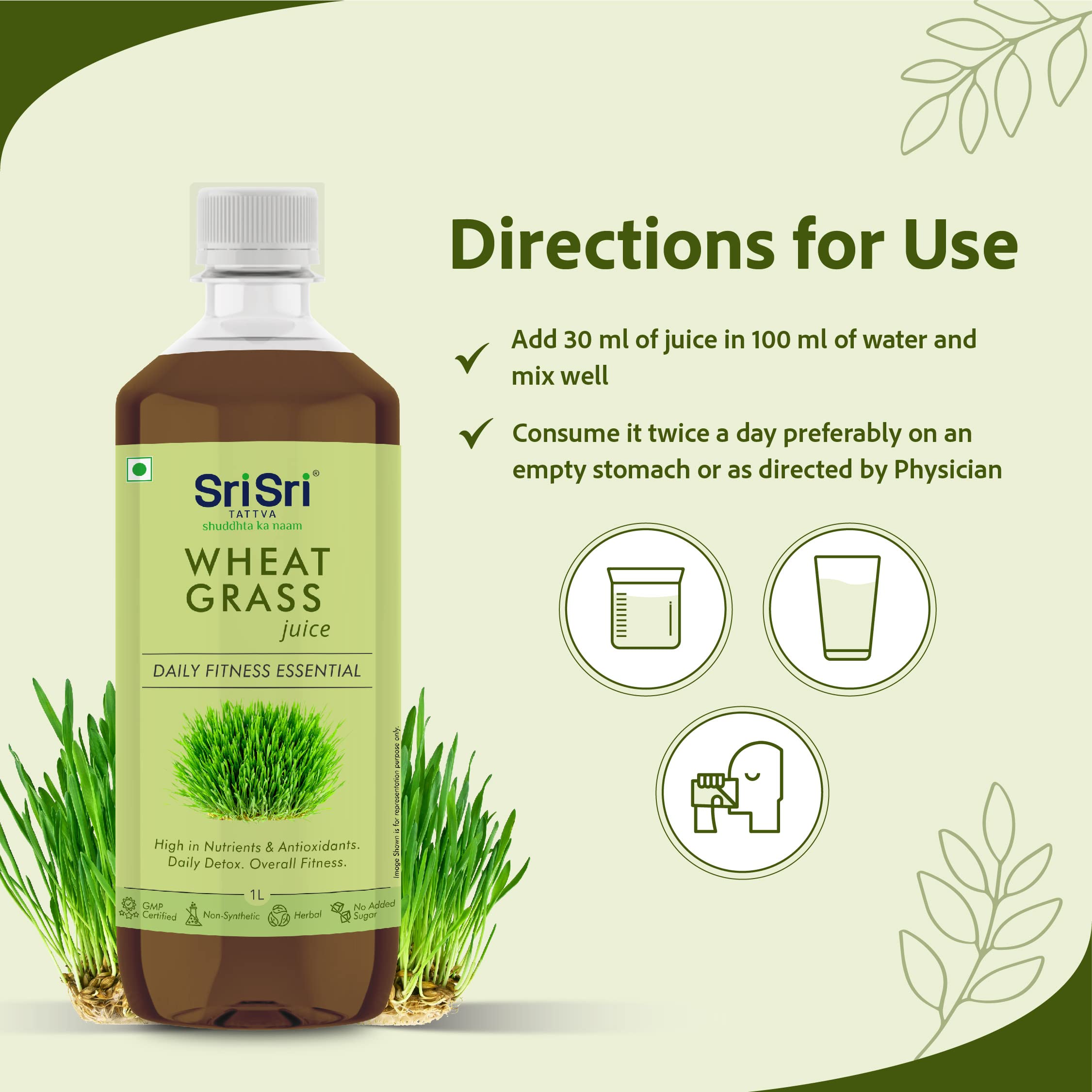 Sri Sri Tattva Wheat Grass Juice - Daily Fitness Essential 1L