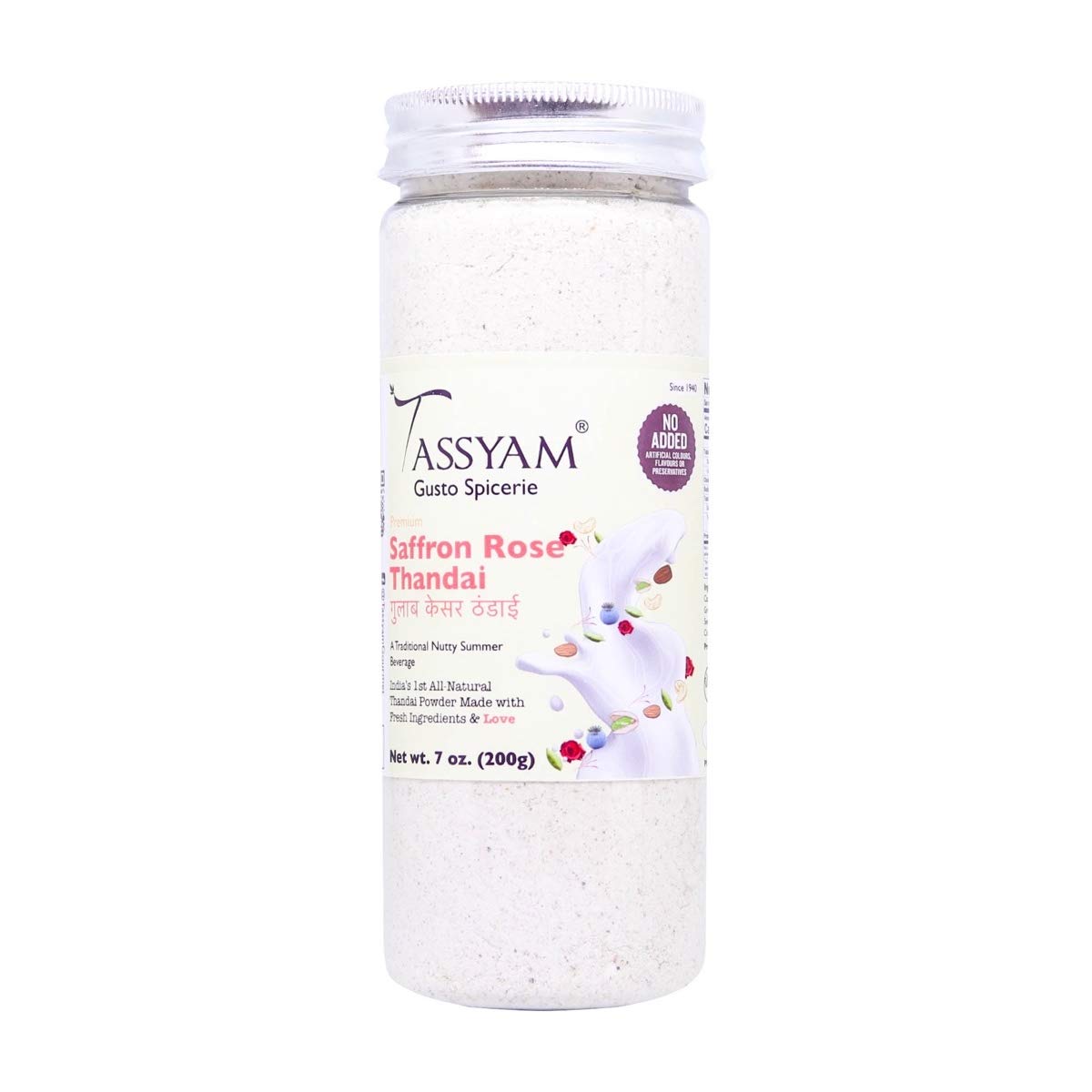 HomeHealth & PersonalDiet & NutritionHealth DrinksTassyam Saffron Rose Thandai 200g | All Natural with Badam Pista Kaju & Seeds Shardai [India's First - No Colours Flvouring substances or Preservatives]
