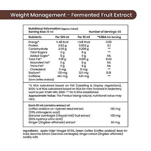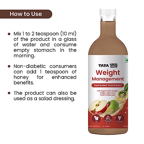 Tata 1mg Weight Management Juice with Green Coffee, Garcinia, Ginger, & Apple Cider Vinegar For Adults (Pack Of 1, 500ml)