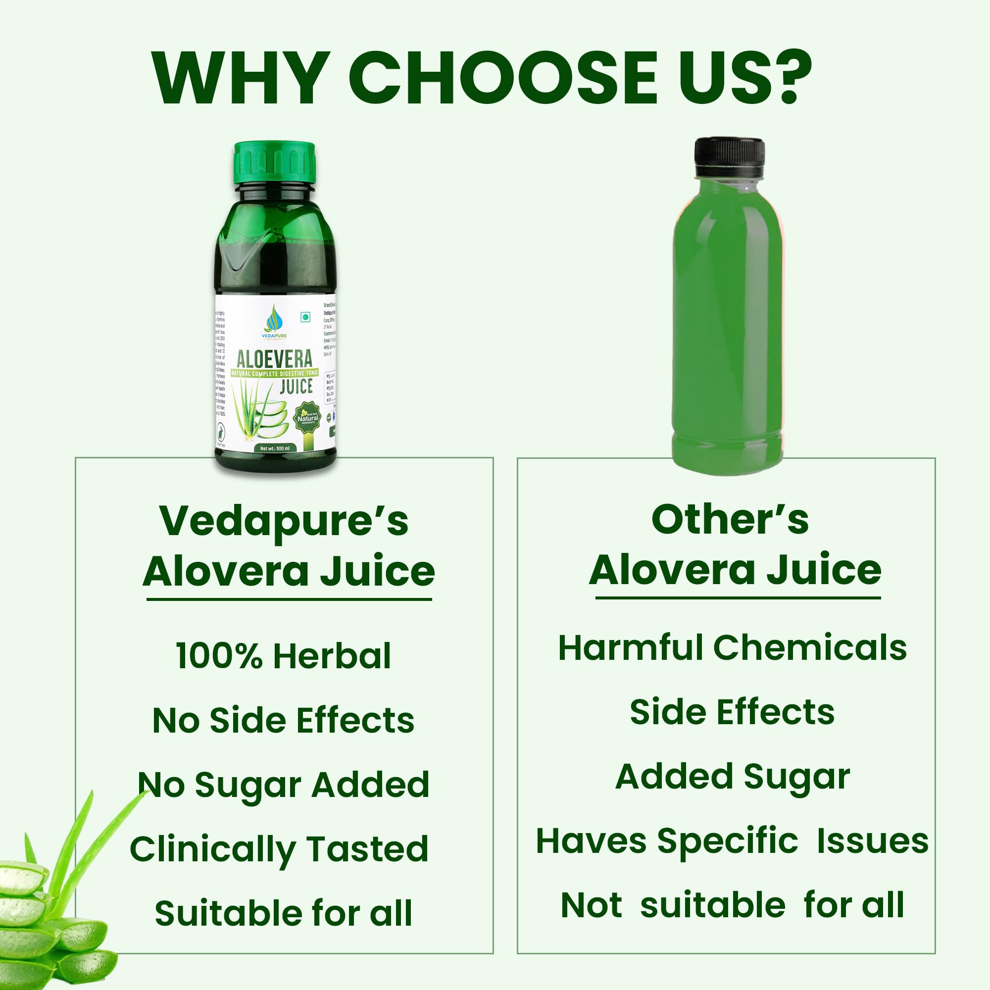 VEDAPURE Natural Aloe Vera Juice For Immunity Booster | Sugar Free | Digestion Herbal Juices | With Minerals & Vitamin A E C | Boost Metabolism | Helps in Skin Hair & Nails Care | (500 ML)