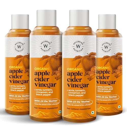 Wellbeing Nutrition Apple Cider Vinegar with Turmeric, Amla, Cinnamon and Black Pepper | Raw Unfiltered with 2X The Mother | Weight Management, Boost Immunity & Detox, Skin Health | 500ml - Pack of 4