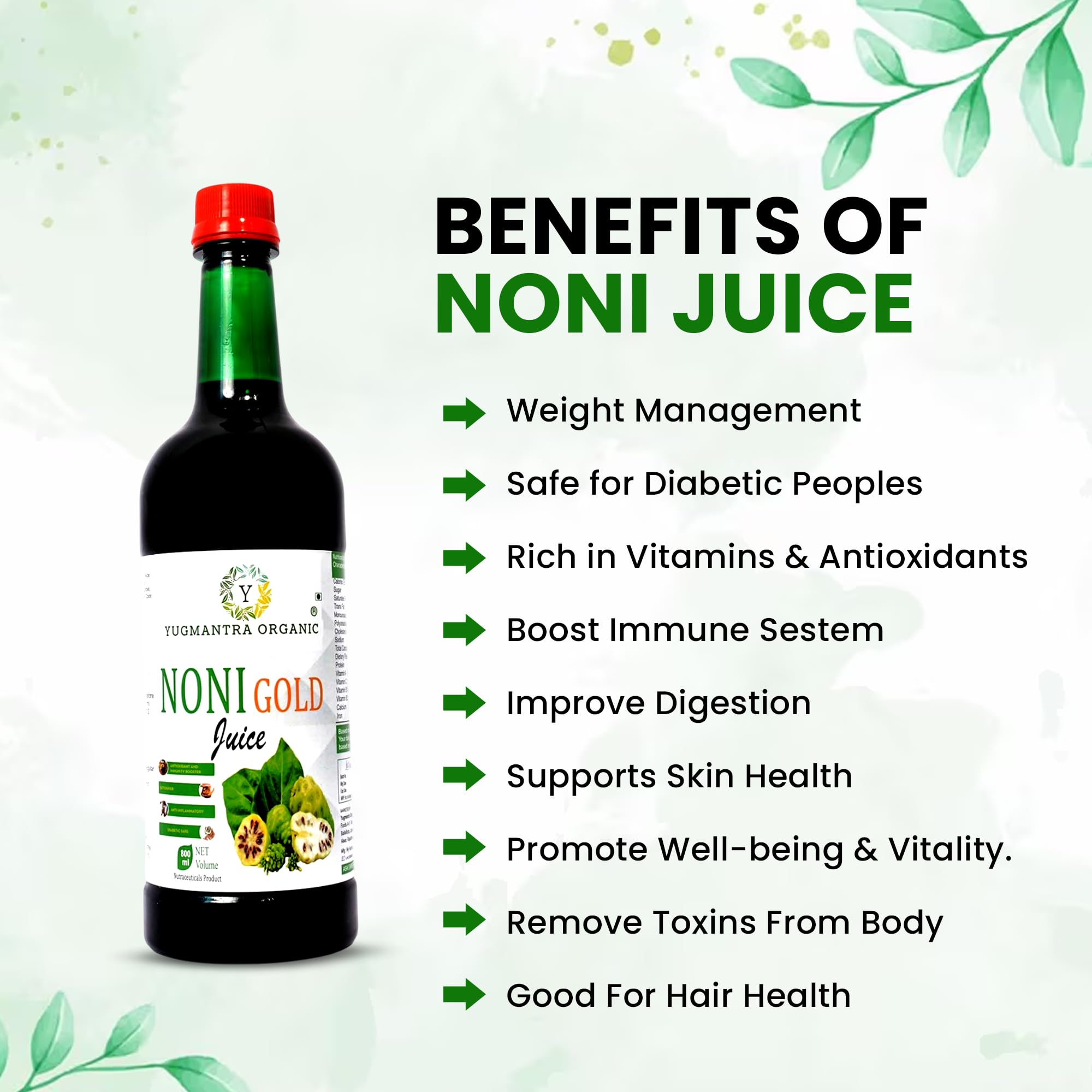 Yugmantra Orgnanic Raw Noni Juice Gold With Rich Antioxidant|Supports Joint Health|strengthen your immunity|No Additive 100% Pure Immunity Booster for Skin & Hair- 800 Ml