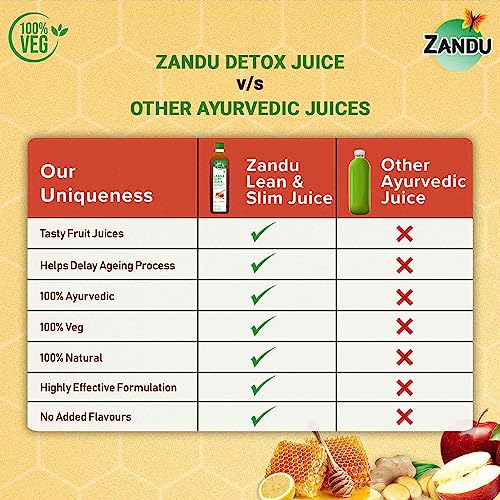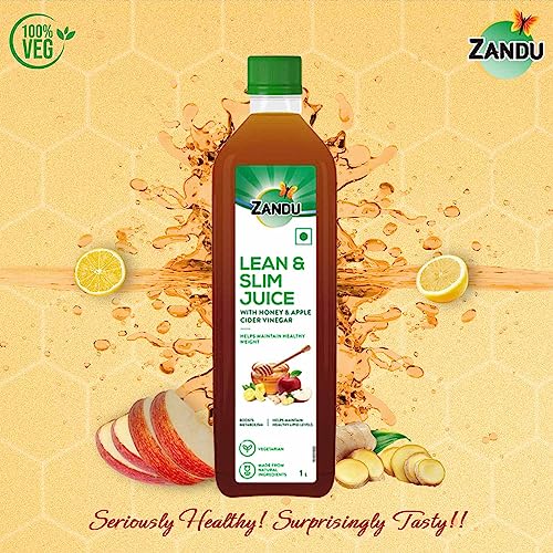 Zandu brings to you Lean & Slim Juice a unique formulation that provides the goodness of selected Ayurvedic ingredients with zero bitterness! Zandu Lean & Slim Juice is prepared using all-natural ingredients like Apple Cider Vinegar Sunthi Nimbu (Citrus limon) and Madhu (Honey). These age-old natural ingredients have been known to maintain a healthy weight boost metabolism help maintain a healthy gut support digestion and improve skin health. Zandu Lean & Slim Juice also helps maintain healthy lipid levels. The formidable Ayurvedic juice is one of its kind and embodies the adage Everything healthy need not taste unpleasant. as it has a subtle and pleasing taste that provides a holistic wellness solution in an easy to consume manner. Zandu Lean & Slim Juice is formulated with care to help you manage the hectic modern-day challenges to lead a healthy and active life. This rejuvenating juice is made of veg & natural ingredients and comes with no added sugar salt artificial flavours and colours. Its about time to incorporate the healthy habit of drinking wellness juice as a part of your daily wellness routine. Celebrate true wellness & experience a mesmerizing taste and the goodness of all-Ayurvedic ingredients in just one sip!