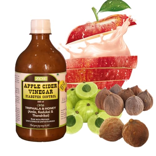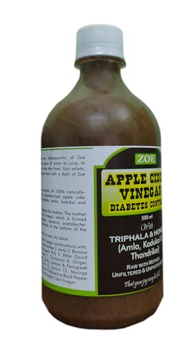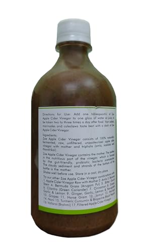 ZOE Apple Cider Vinegar (ZOE ACV) with Amla Kadukkai Thandrikkai is a naturally fermented elixir made from delicious natural Himalayan apples. This 100% pure vinegar contains the goodness of mother of vinegar which gives it a cloudy appearance and affirms its high-quality unprocessed nature.