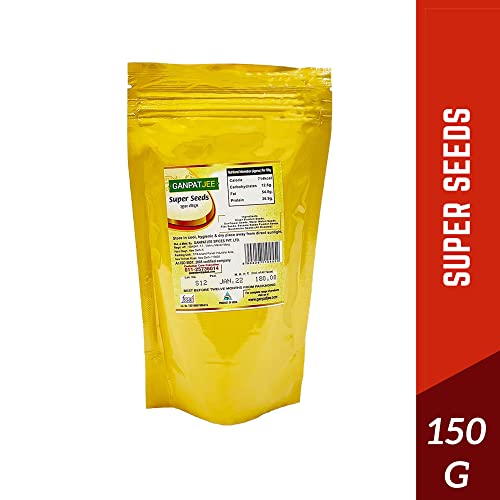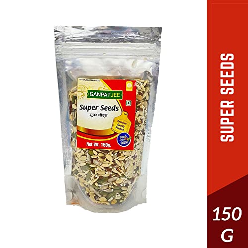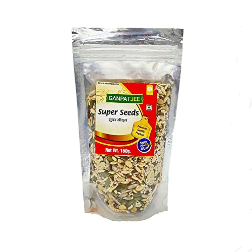GANPATJEE Super Seeds are a healthy mixture of Seeds. It Consist of Roasted Green pumpkin seeds (kaddu magaj) Roasted Sunflower Seeds Roasted watermelon seeds Roasted Flax Seeds Roasted Sesame Seeds Roasted Muskmelon seeds.