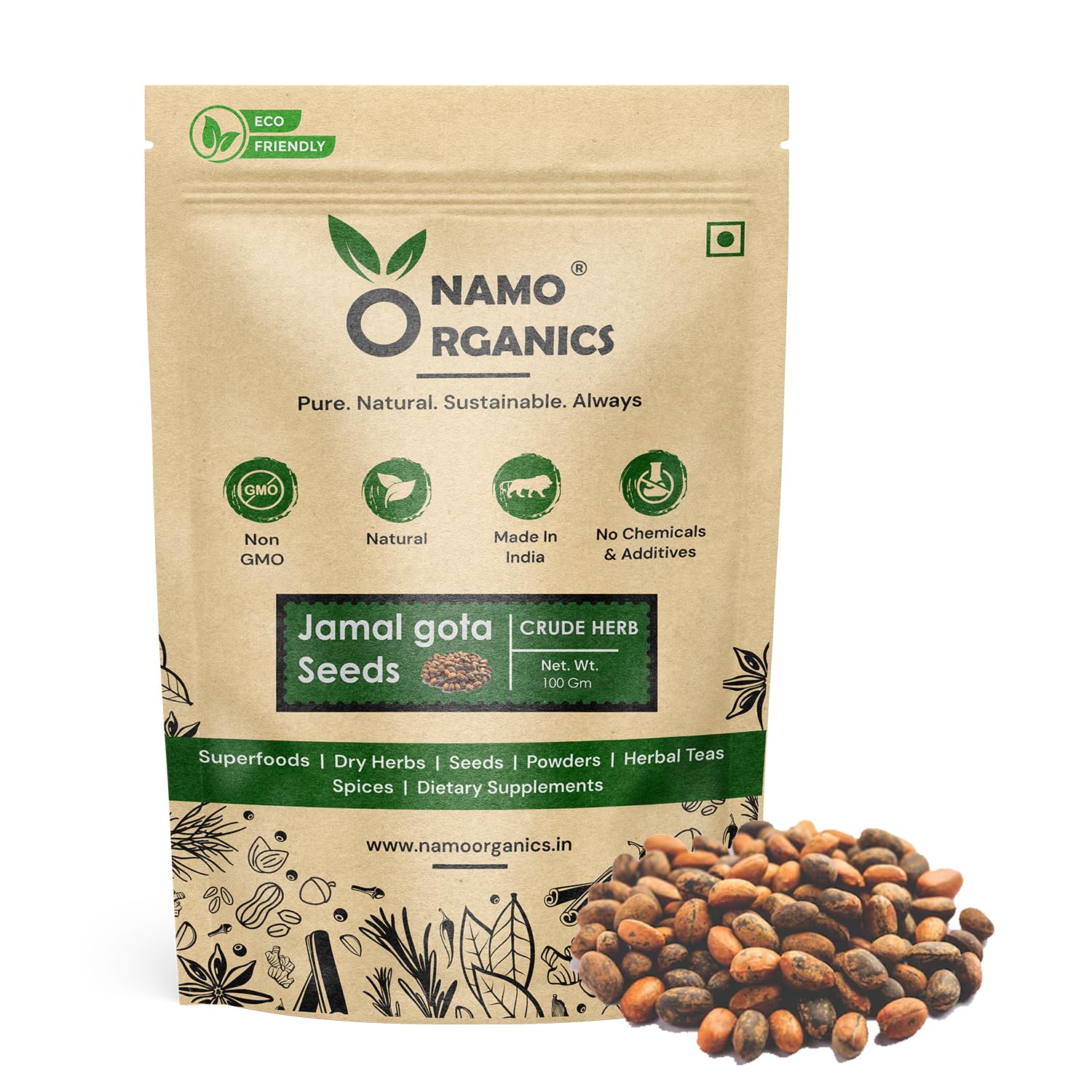 Namo Organics Raw jamalgota beej - 100g - Jamalghota beej - Jamal gota Seeds - for hair growth