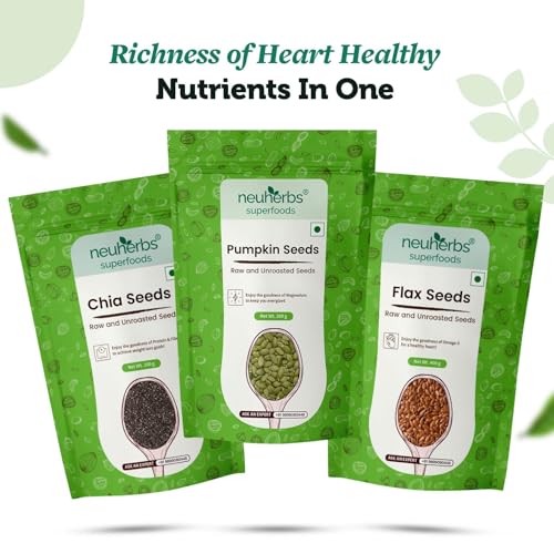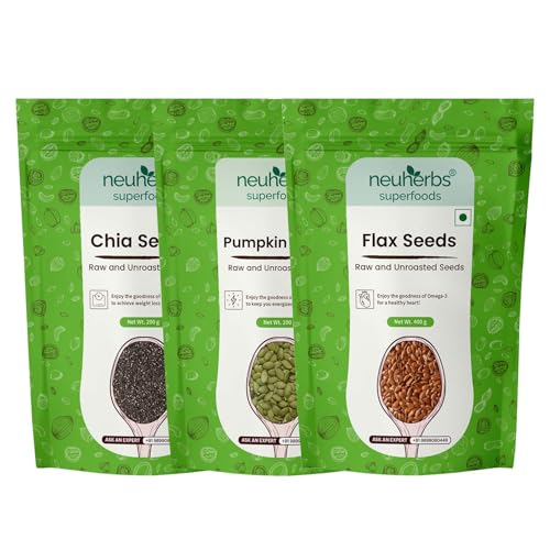 With the goodness of nutrients packed seeds Neuherbshas brought to you the amazing combination of Organic Chia Organic Flax & Organic Pumpkin seeds that are healthy yet relishing to be used as a munching partner.Chia & Flax seeds are known to be a good source of plant based Omega-3 (AlphaLinolenic Acid) and Calcium which is good for the heart and helps make bones and joints stronger during growing old age. Pumpkin seeds are known to possess required minerals & protein for a healthy body it helps keep you energetic and away from those unhealthy eating during the meal gaps. It is nourishing but also it tastes crunchy and nutty so that you can enjoy your healthy snacking without any compromise.Neuherbs provides you with certified quality seeds that are raw inroasted organic and naturally gluten-free for your complete wellness