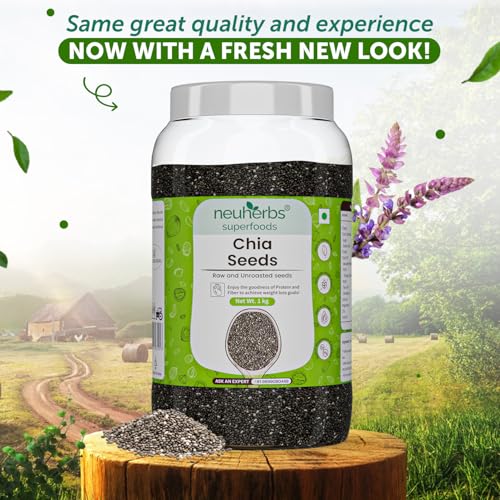 Neuherbs Raw Unroasted Chia Seed For Weight Management | Rich In Omega -3 | Dry Seeds For Eating | Healthy Snacks - 1 kg Chia Seeds